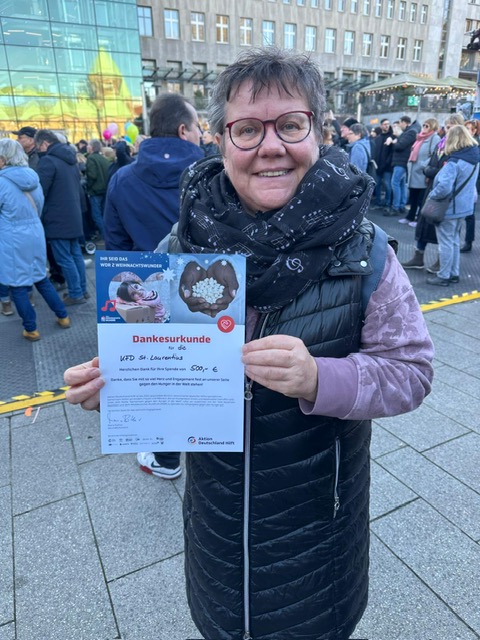 Im Rahmen ihrer Adventsfeier hat die kfd St. Laurentius für das WDR Weihnachtswunder gesammelt. Dabei kamen stolze 377 Euro zusammen. Der Vorstand der kfd entschied, den Betrag auf 500 Euro aufzustocken.